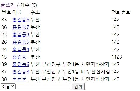 ListAction.java를 실행하면 목록이 보인다.