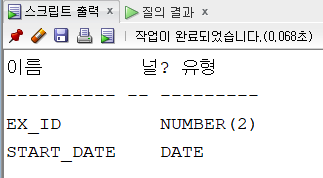 ex_id NUMBER(2), --열의 이름, 데이터 타입