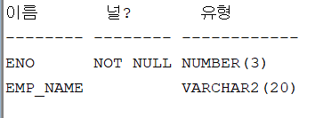 emp 테이블 Describe하기: eno는 NOT NULL이므로 반드시 값을 입력해야함