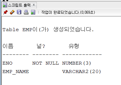 제약조건을 걸고 emp 테이블 만들기 (열의 데이터 타입을 정한 뒤)