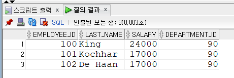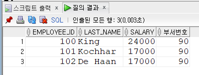 90번 부서의 직원들을 새테이블 E_EMP에 입력
