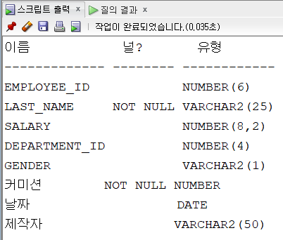 ADD (커미션 NUMBER DEFAULT 0 NOT NULL);