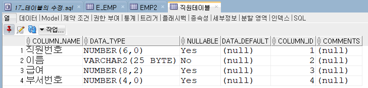 <테이블 컬럼(열)의 추가/수정/삭제>