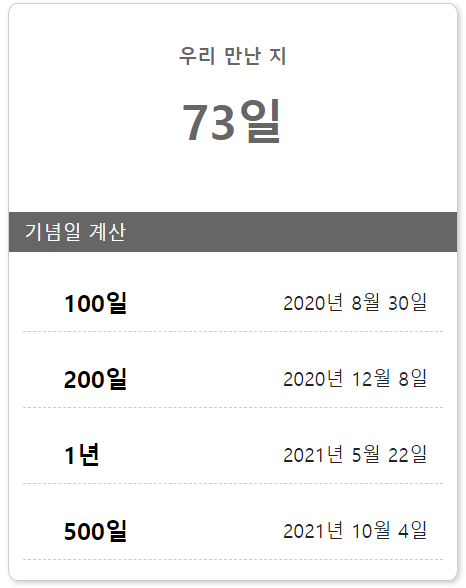 var firstDay=new Date("2020-05-22"); //처음 만난 날