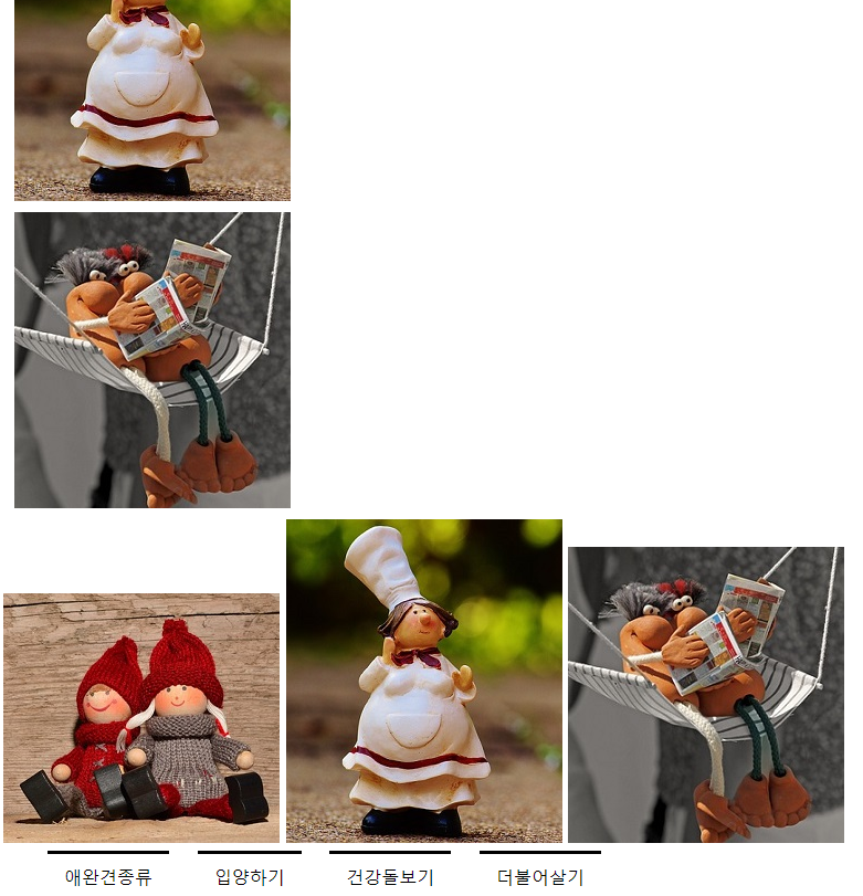 <p>밥그릇은 쉽게 넘어지지 않도록 바닥이 넓은 것이 좋습니다.물병은 대롱이 달린 것으로 선택하세요. 밥그릇에 물을 주게 되면 입 주변에 털이 모두 젖기 때문에 비위생적이므로 대롱을 통해서 물을 먹을 수 있는 물병을 마련하시는 것이 좋습니다.</p>