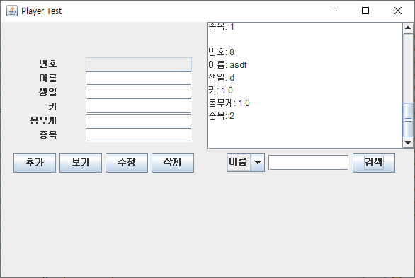 private String[] text= {"번호","이름","생일","키","몸무게","종목"};