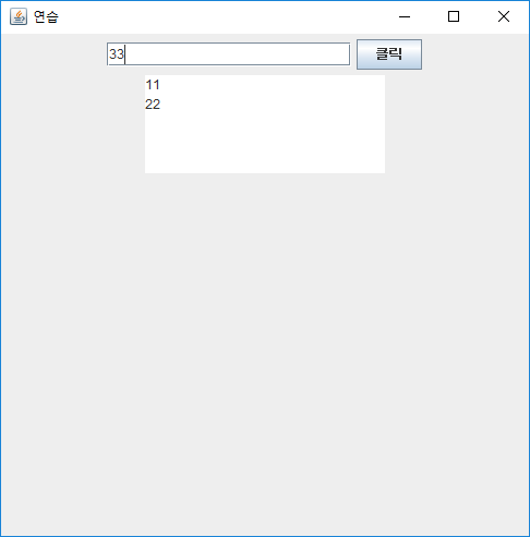 1 2 3 4 5 6 7 8 9 10 11 12 13 14 15 16 17 18 19 20 21 22 23 24 25 26 27 28 29 30 31 32 33 34 35 36 37 38 39 40 41 42 43 44 45 46 47 48 49 50 51 52 53 54 55 56 57 58 59 60 61 62 63 64 65 66 67 68 69 70 71 72 73 74 75 76 77 78 79 80 81 82 83 84 85 86 87 88 89 90 91 92 93 94 95 96 97 98 | package swingTest; import java.awt.BorderLayout; import java.awt.Color; import java.awt.GridLayout; import java.awt.List; //util에 있는 List는 Arraylist import java.awt.event.ActionEvent; import java.awt.event.ActionListener; import java.awt.event.ItemEvent; import java.awt.event.ItemListener; import javax.swing.JButton; import javax.swing.JCheckBox; import javax.swing.JFrame; import javax.swing.JPanel; import javax.swing.JTextArea; import javax.swing.JTextField; public class ListTest2 extends JFrame{ private JTextField tf; private JTextArea ta; private List list; private JCheckBox cb; public ListTest2() { //생성자 만들기 setTitle("List 예제"); setLayout(new BorderLayout()); setDefaultCloseOperation(JFrame.EXIT_ON_CLOSE); JPanel p1=new JPanel(); tf=new JTextField(15); JButton btn=new JButton("추가"); cb=new JCheckBox("다중선택"); p1.setBackground(Color.DARK_GRAY); p1.add(tf); p1.add(btn); p1.add(cb); JPanel p2=new JPanel(new GridLayout(1,2)); list=new List(); ta=new JTextArea(); p2.add(list); p2.add(ta); ActionH ah=new ActionH(); ItemH ih=new ItemH(); btn.addActionListener(ah); //연결 tf.addActionListener(ah); //엔터쳐도 값 들어감 list.addItemListener(ih); //연결 cb.addItemListener(ih); //연결 add(BorderLayout.NORTH,p1); add(BorderLayout.CENTER,p2); setSize(400,400); setVisible(true); } public static void main(String[] args) { new ListTest2(); //생성자 부르기 } //ActionH class ActionH implements ActionListener{ public void actionPerformed(ActionEvent e) { if(tf.getText().isEmpty()) return; list.add(tf.getText()); tf.setText(""); //비우기 } } //ItemH class ItemH implements ItemListener{ public void itemStateChanged(ItemEvent e) { Object obj=e.getSource(); if(obj==list) { //list가 이벤트 발생 ta.setText(""); if(list.isMultipleMode()) { //리스트가 다중선택 String []arr=list.getSelectedItems(); for(int i=0;i<arr.length;i++) { ta.append(arr[i]+"\n"); } }else { //리스트가 단일선택 //리스트(list)에서 선택한 내용을 textarea(ta)에 출력하기 ta.setText(list.getSelectedItem()); } }else if(obj==cb) { //checkbox가 이벤트 발생 if(cb.isSelected()) { //checkbox 선택인지->리스트가 다중모드 list.setMultipleMode(true); }else { //checkbox 해제인지->리스트가 단일모드 list.setMultipleMode(false); } } } } } | cs |