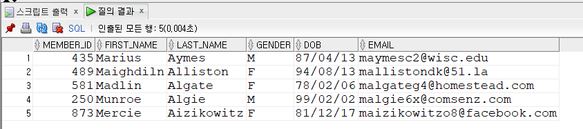 where rownum<=5) where rn>=1;