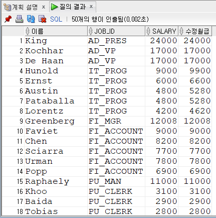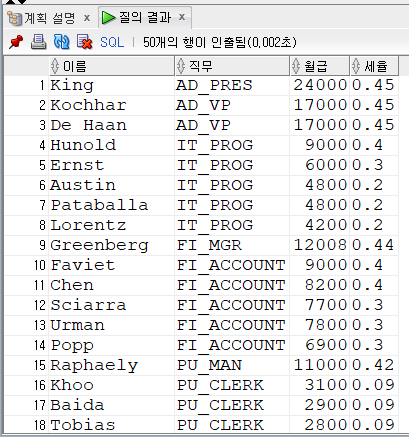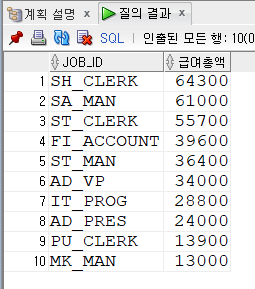 SELECT job_id 직종, SUM(salary) 월급여합계