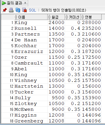 employees 테이블에서 commission_pct의 평균값을 출력 (널값은 제외)