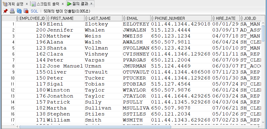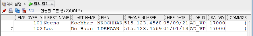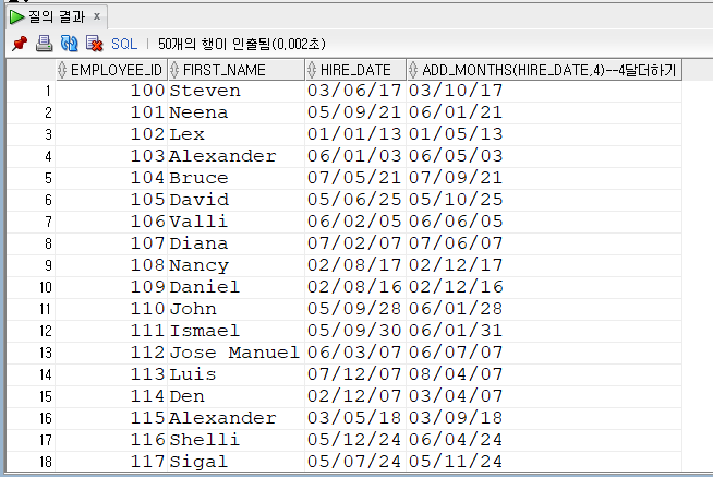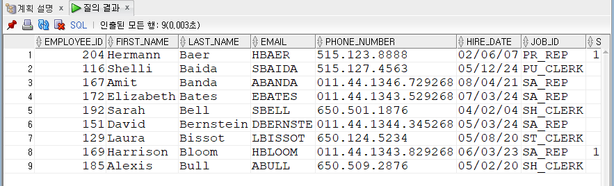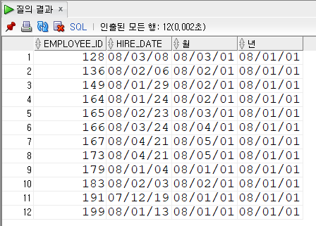MAX, MIN 함수를 문자열에 적용 MAX(hire_date)는 가장 최근날짜, MIN(hire_date)는 가장 오래된 날짜.