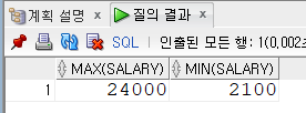 MAX, MIN: 최대값과 최소값 employees 테이블에서 salary의 가장 큰 값과 작은 값 출력