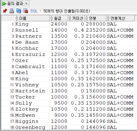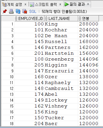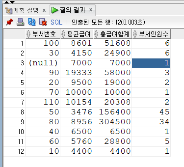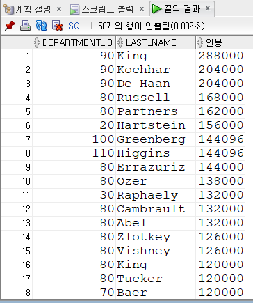 SELECT department_id 부서번호, SUM(salary) 급여합계