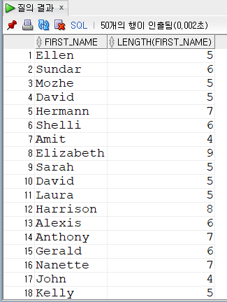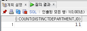 COUNT: 행의 개수 출력 (null값은 제외됨)