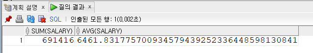 SUM, AVG : 합계와 평균 (숫자만 가능)