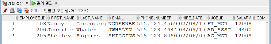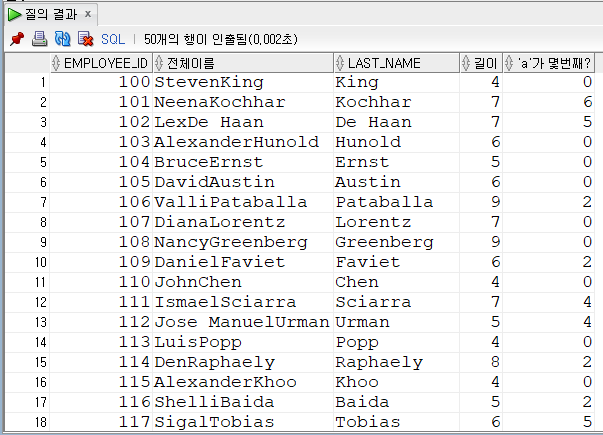 employees 테이블에서 department_id가 90인 부서의 직원 수 출력