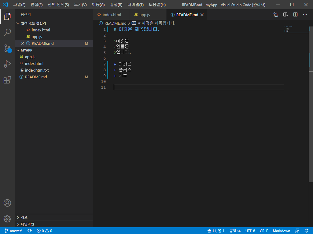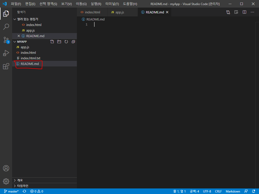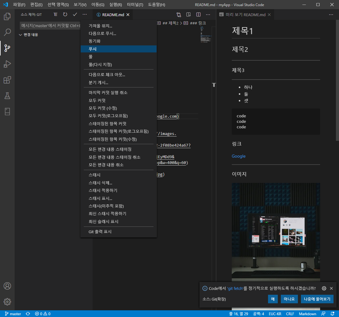 비주얼 스튜디오 코드에서 깃허브에 README.md 파일 업로드하기