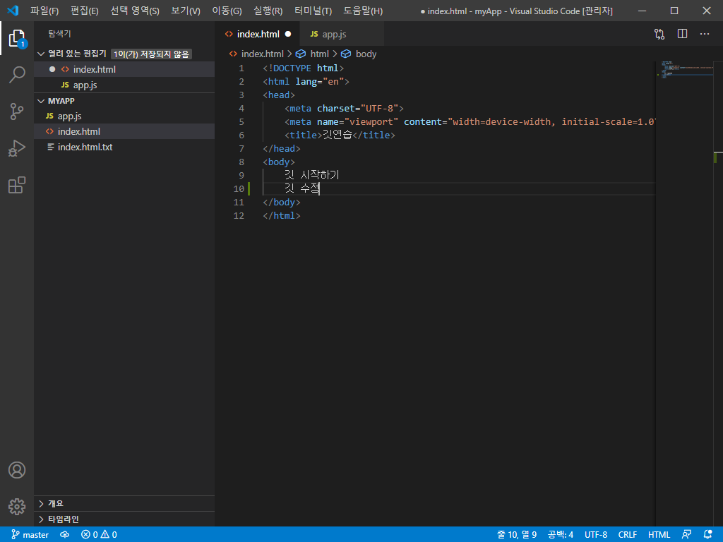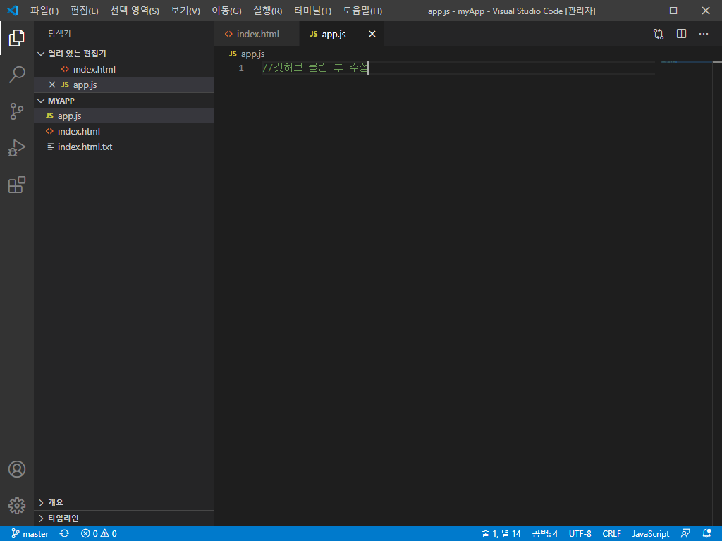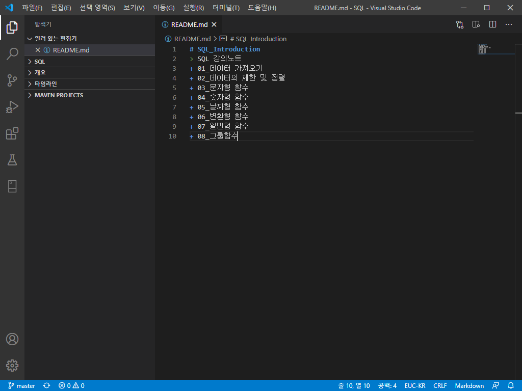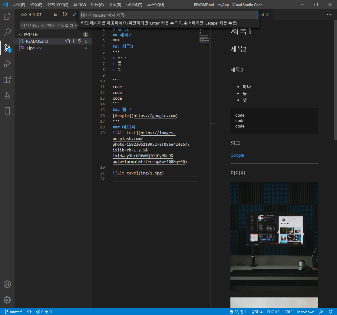 비주얼 스튜디오 코드에서 깃허브에 README.md 파일 업로드하기