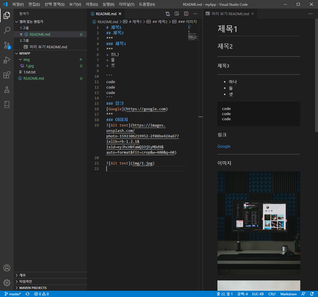 + 비주얼 스튜디오 코드 (Visual Studio Code)로 README.md 마크다운 문서를 만들어서 업로드한 프로젝트 설명하기