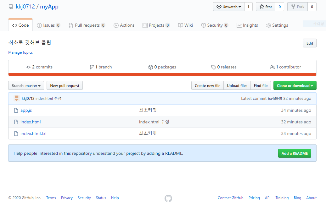 깃허브에 README.md 파일 확인