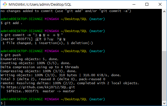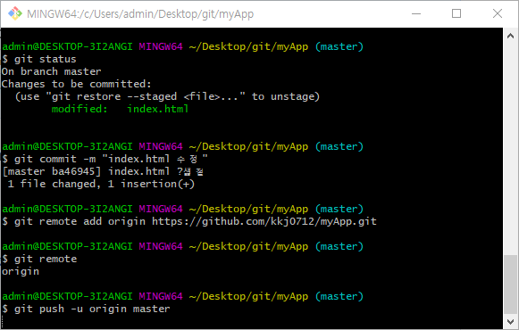 깃허브에 올리는 폴더에 깃허브 주소가 연동되어 있어야 함.